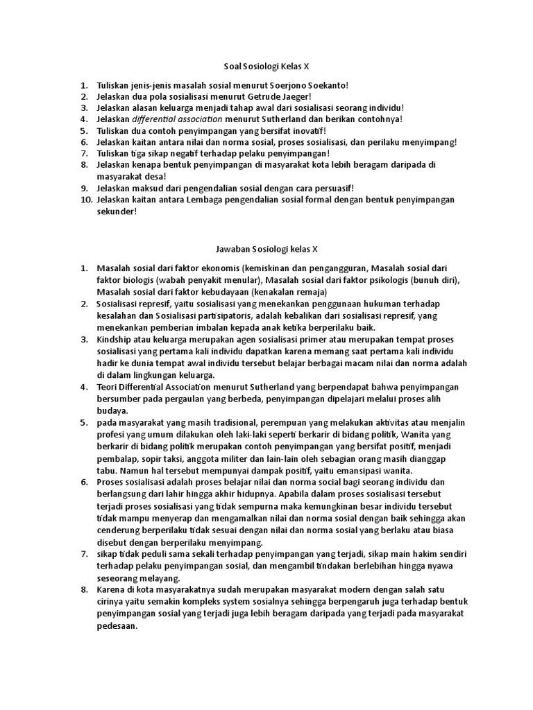 Soal Sosiologi Kelas X Ragam Gejala Sosial