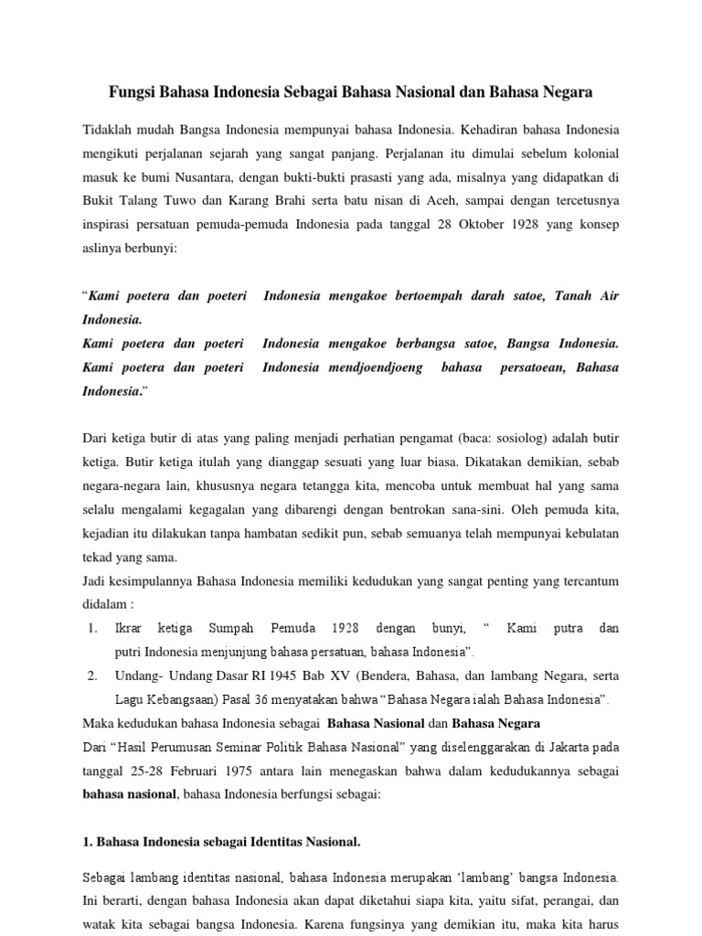 Fungsi Bahasa Indonesia Sebagai Bahasa Nasional
